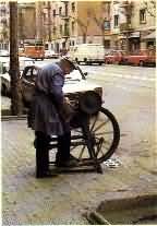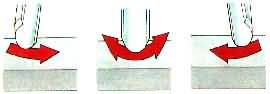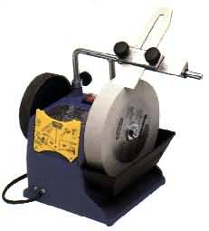 Si no disponemos de una de estas máquinas, nos pediremos a Telepaciencia una buena ración, cogeremos una piedra corriente de afilar (grano medio o fino), mojada con agua o aceite e iremos realizando pasadas con la herramienta sobre la piedra hasta lograr el mismo resultado, el dibujo correcto del corte.