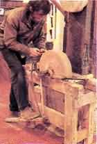 3.- La aplicación: Taparemos los poros, las imperfecciones, grietas, nudos, etc. con cera dura (Si los defectos son muy grandes, deberemos realizar un emplastecido previo o incluso el añadido de una pieza de madera). Después cubriremos los poros con cera dura. Para ello la podemos aplicar frotando un trozo de lija gastada en la cera hasta formar una película que usaremos para impregnar en la madera (cuidado de no lijar). También podemos frotar un cepillo de raíz en la cera, y luego en la madera, para conseguir el mismo efecto. Cuando hayamos realizado esto, deberemos conseguir que brille la cera que acabamos de dar, para lo cual nos comeremos un buen bocadillo (para conseguir las fuerzas que vamos a necesitar) y cepillaremos enérgicamente la talla.