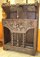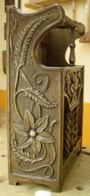 Paragüero con decoración floral. Frente. Castaño. Medidas: 80x56x24 cm. Realizado en 2005.