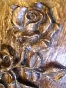 Cuadro con rosa calada. Castaño. Medidas: 20x20x3,5 cm. Realizado en 2006.